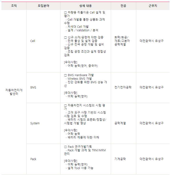 우대사항 : 어학 능력 / 배터리 제품 이해